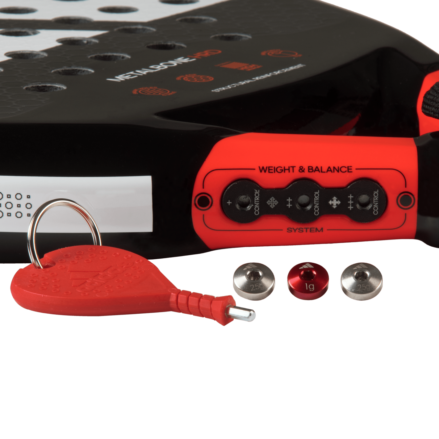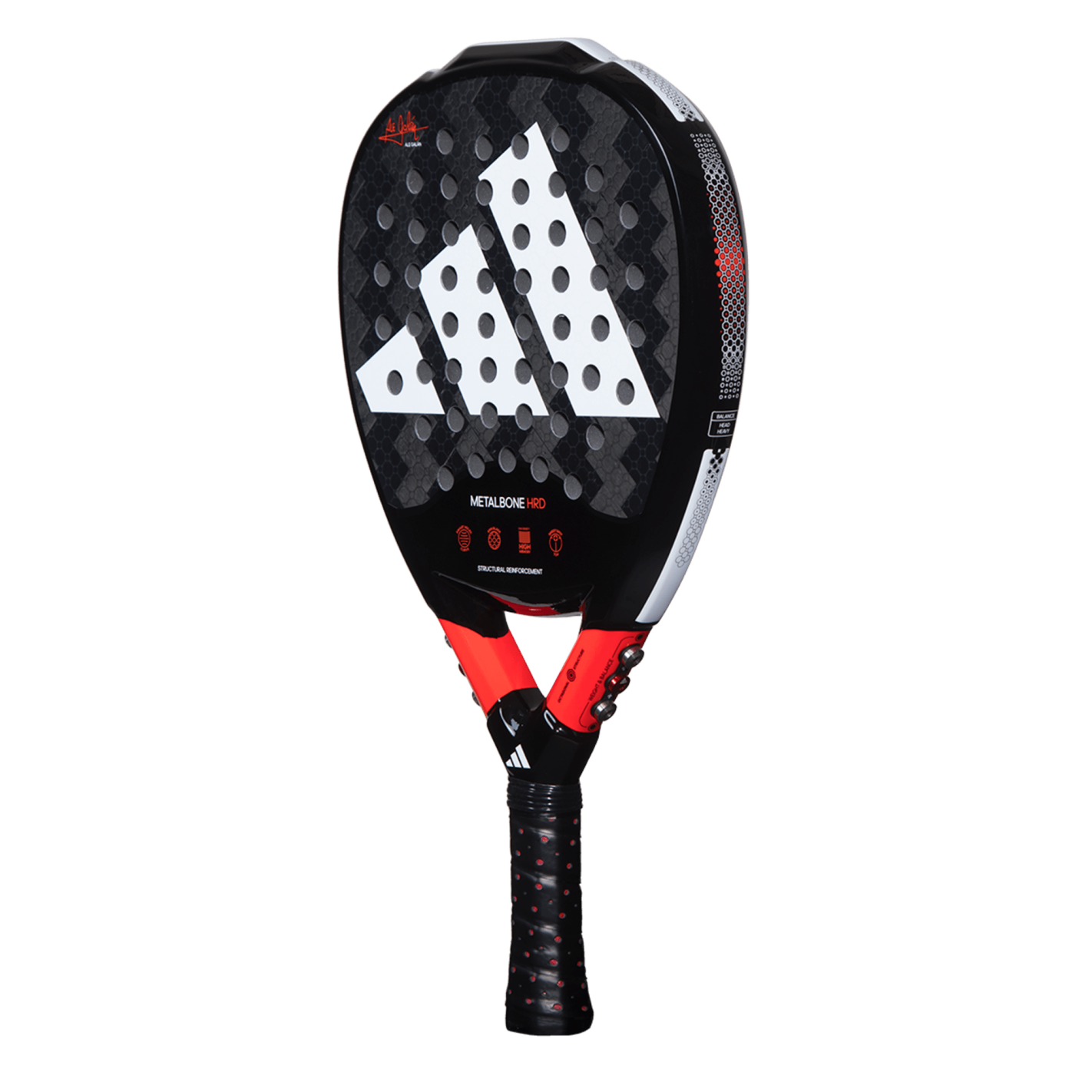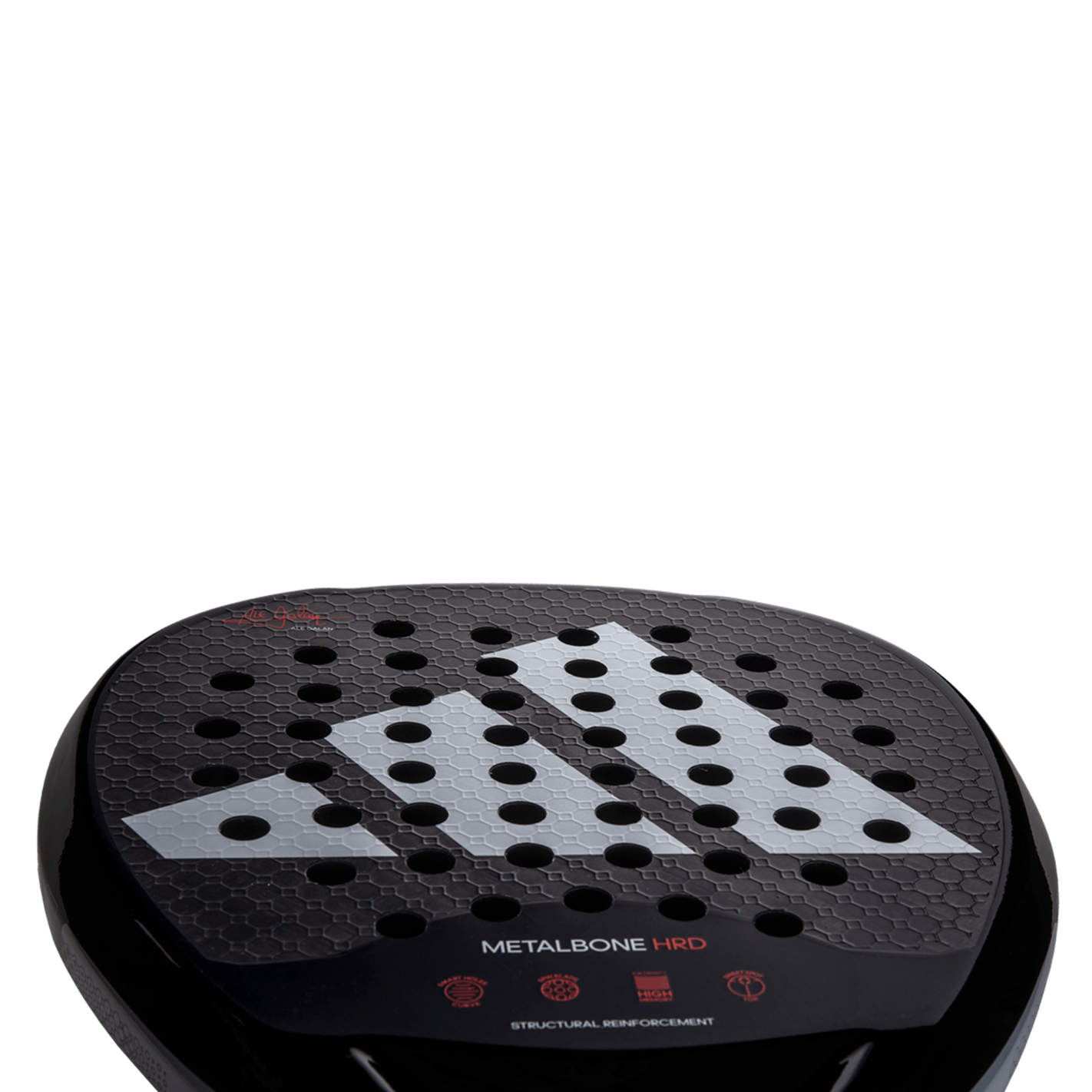 Do you want more power in your shots? Then the new METALBONE HRD 3.2 is your racket. It contains the same technology the METALBONE 3.2 but with one key difference – the inclusion of the harder and more compact HIGH MEMORY EVA rubber inside. Because of this feature, along with the 2-1 ALUMINISED CARBON surface, when you are playing you array of shots, you’ll notice a difference in power. However, this racket isn’t just about power. It also features many of the other technologies that make Metalbone rackets a popular choice. The OCTAGONAL STRUCTURE frame technology increases the racket's structural rigidity, making it firmer. Embedded withing the face of the racket, the SPIN BLADE system provides even greater control of your shots, while the WEIGHT AND BALANCE SYSTEM technology can be used to customise the balance with the removable weight system in the heart of the racket. With so much technology and so many options to personalise the racket to suit your game, it is no surprise that this is the racket chosen by Ale Galán, the number one player in the world.