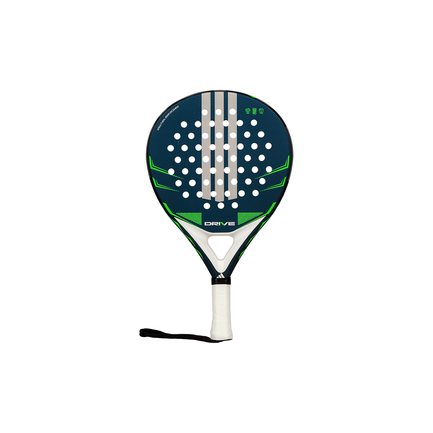 Maximum control and reliable handling for beginners. The adidas Drive blue 2026 padel racket is crafted with a round shape and Fiber Glass surface to maximize playability. It incorporates Soft Performance EVA for comfort, and features the STRUCTURAL REINFORCEMENT system for robust durability, ideal for Discovery players.
